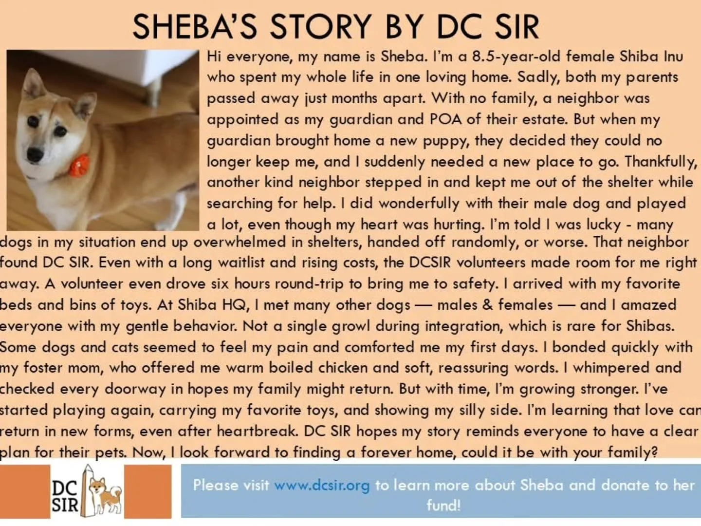 We are honored to introduce a special new page dedicated to celebrating and memorializing our beloved DC SIR alumni who have crossed the Rainbow Bridge. Their memories and spirits will always remain a cherished part of the DC SIR family.