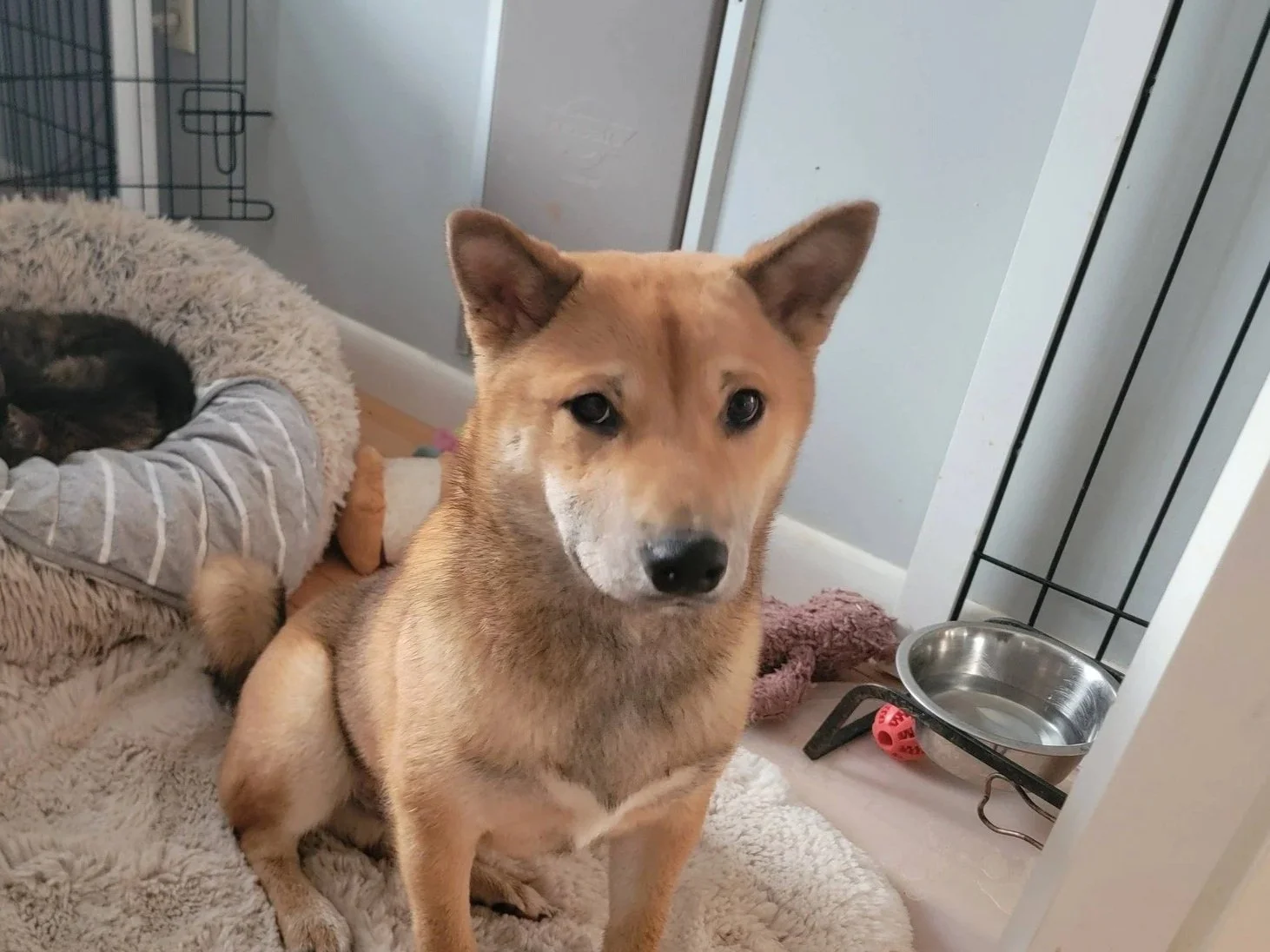 Hi everyone, my name is now Colby, like the cheese! I was born on October 13, 2025, in a PA puppy mill. I am a male Shiba Inu and have had the most incredible journey! You see, my brother and sister went to DC SIR back in December of 2025. They had cheese names, Havarti and Asiago. I was sold off to a pet store. I was adopted and lived in a home for a short while, but my owner took me to a shelter and told them I was “too much puppy.” The rescuer who helped my brother and sister in PA found out about me and called DC SIR. Initially, no one knew I was from the same litter. When DC SIR saw my medical with the exact same handwriting and puppy schedule from birth, they called the liaison, who was able to confirm that we are from the same litter! Let me tell you about myself. I rode well in the car (for 6 hours), but I did want to sit on the driver's lap, so a comforting hand helped me settle and nap. Once I arrived at Shiba HQ, I explored the yard on my own. I was a little nervous to meet the dogs and cats. Once Uncle Aureus started to play with me, I was so happy! I pranced around, brought toys to my foster family, and gave them kisses for getting me out of the shelter. I am as sweet as can be – just like my brother and sister! DC SIR thinks I will be great in a variety of homes! I am an active puppy, so I would need an active family or a multi-dog household to keep me busy. I love to fall asleep on the couch, curled up next to my foster mom. I enjoy puzzle games, walk well on a leash, and sleep through the night! I know DC SIR will find my pawfect forever home. If you think I will be a good fit for your family, apply to adopt me at www.dcsir.org/adopt.